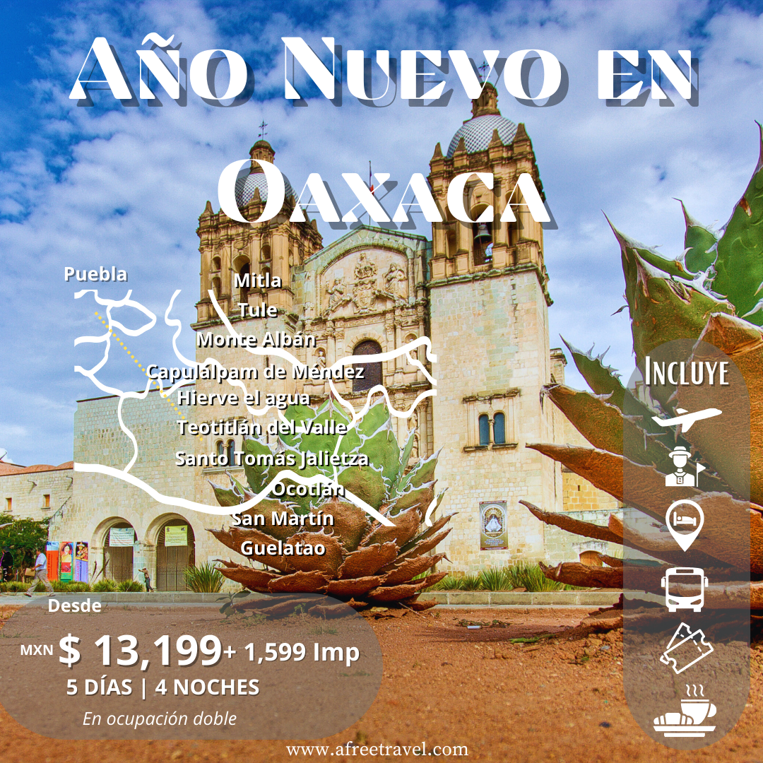 Bajaremos para visitar la zona arqueológica mejor conocida como la Ciudad de los muertos, con su principal característica de sus paredes llenas de grecas puestas a presión sin ningún tipo de pegamento, además su poblado que mezcla la conquista religiosa sobre las tradiciones mexicas y el mercado de artesanías. En nuestro camino de regreso nos detendremos a comer en un restaurante con un menú tipo buffet para degustar de los platillos de la región (comida no incluida).